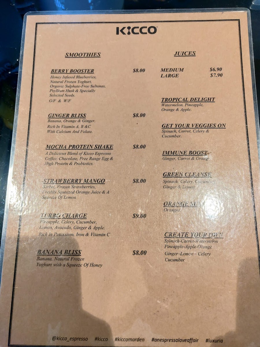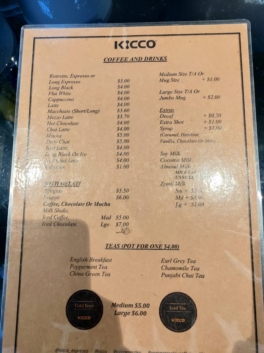 Kicco Espresso Marden Menu